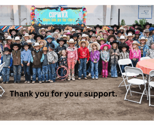 Welcome to Central Oregon Pee Wee Rodeo Association, we are one of Oregon’s largest & longest running youth rodeo associations, started back in 1968! All Around Girl and Boy in each age division receive trophy saddles and buckles, with awards going down further in all around placings. Contestants must compete in 6 of the 8 rodeos to be eligible for awards and year end jacket. We also give year-end awards in each event for each age group with all awards being presented at awards banquet.